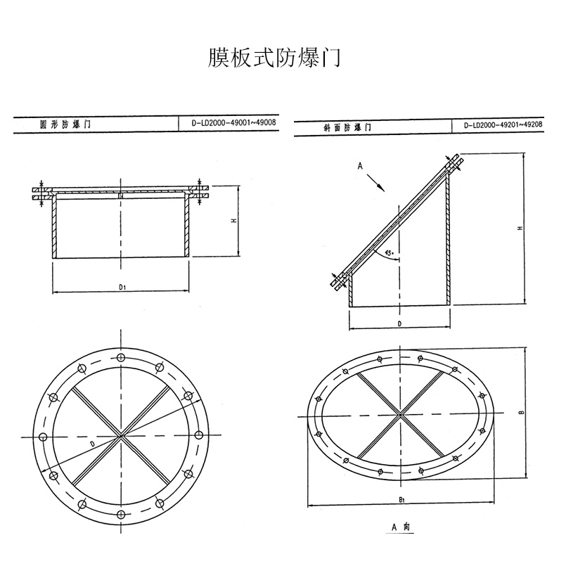 防爆門:圓形防爆門、斜面防爆門、重力防爆門