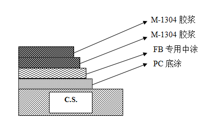 1.3 待中涂FB專用充分干燥后(一般為涂刷后兩小時以上至二十四小時以內(nèi)),全面涂調(diào)和了固化劑RE的M-1304粘接劑一層,在現(xiàn)場按用量現(xiàn)調(diào)現(xiàn)用,配比比例為RE:M-1304=1:20。