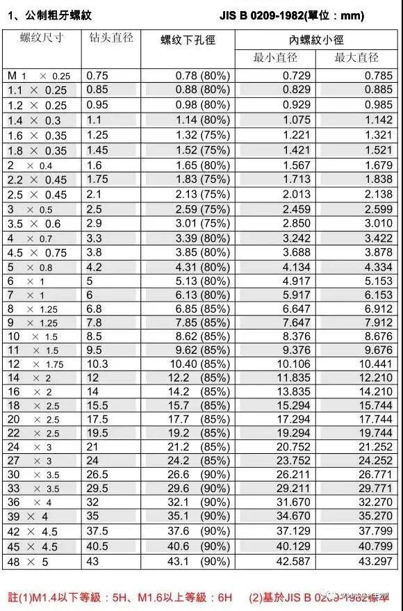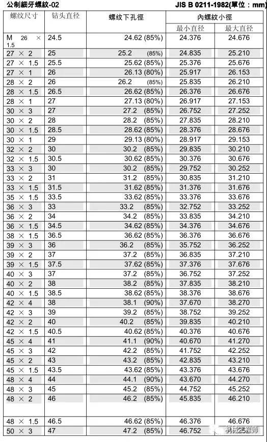絲錐和鉆頭的參數(shù)對(duì)照表--隔熱管托