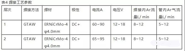 4. C276焊接工藝參數見表4