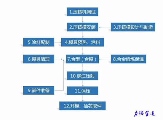 直接擠壓鑄造:噴涂料、澆合金、合模、加壓、保壓、泄壓,分模、毛坯脫模、復位;