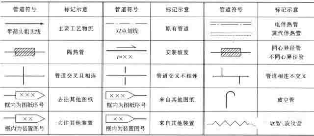 表:常用管道符號