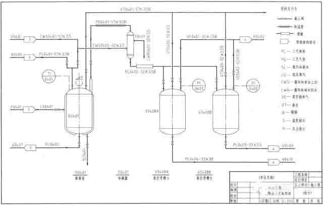 看標題欄和圖例中的說明,了解圖樣名稱、各種圖形符號、代號的意義及管道的標注等。掌握系統中設備的數量、名稱及位號,了解物料的工藝施工流程線。