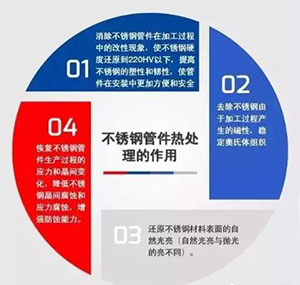 2、恢復(fù)不銹鋼管件生產(chǎn)過程的應(yīng)力和晶間變化,降低不銹鋼晶間腐蝕和應(yīng)力腐蝕,增強(qiáng)防蝕能力。