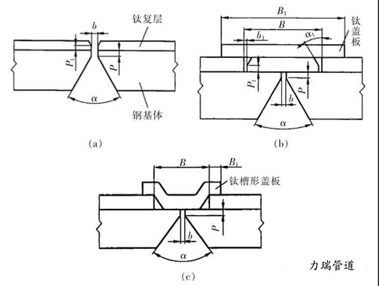 坡口形式是避免鈦與鋼直接相焊的主要措施,設計科學實用、經濟合理的焊接坡口對復合板焊接尤為重要。根據調研查找,鈦復合板常見的接頭形式如圖1所示,各坡口形式的優缺點見表1。