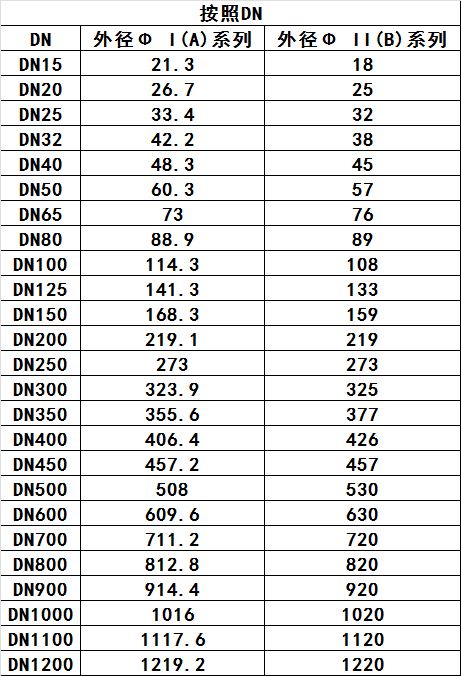 在國內DN的數值基本很常用,但在管路、管道和管閥配件中卻只能代表一部分,為什么說是一部分呢?因為國內的管路系統中同一個DN標注的管道中可以有兩種外徑(Φ即為管路或管道的外徑,后面我們會詳解),如DN100,國內有分I系列和II系列(也有用A系列和B系列來標示),DN100的I系列和A系列為Φ114.3,而DN100的II系列和B系列則為Φ108。所以在出示計劃書和明細的時候DN多少后面如果沒有注明管道外徑Φ的話,用DN標示的時候需要明確是I系列(A系列)還是II系列(B系列),這樣在采購和詢價過程中就很明確,無需溝通和確認就能知道是要什么樣的管道或配件的外徑。