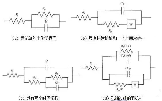 在許多用來描述電化學界面的等效電路中,只有幾個真正使用于處在(或接近)動態平衡的自由腐蝕界面,如果 1-1所示。