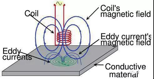 當載有交變電流的檢測線圈靠近導電試件(相當于次級線圈)時,由電磁感應理論可知,與渦流伴生的感應磁場與原磁場疊加,使得檢測線圈的復阻抗發生改變。導電體內感生渦流的幅值大小、相位、流動形式及伴生磁場受到導電體的物理及制造工藝性能的影響。因此,通過測定檢測線圈阻抗的變化,就可以非破壞性地判斷出被測試件的物理或工藝性能及有無缺陷等,此即為渦流檢測的基本原理。
