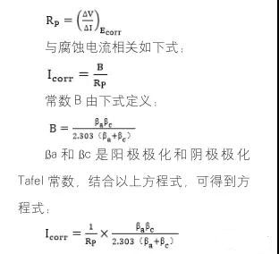 在計算腐蝕電流值時需要知道ßa和 ßc,ßa 和 ßc 可通過 Tafel 外推法或假設的方法得到。大多數情況下ßa 和 ßc的值在 60 ~ 120mV 之間,在一些情況下,假設ßa 和 ßc 都等于 120mV, 可推導出方程式: