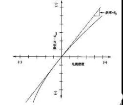 50 年前,Stern 和 Geary 發現電流 -電壓圖在腐蝕電位附近的形狀近似為直線,其斜率被稱為線性極化電阻 Rp,Rp的電化學定義如下式: