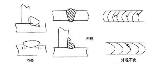 (3)焊接電流過高,焊條直徑過粗。 | (3)選用適當(dāng)電流及適當(dāng)直徑的焊接。 | |