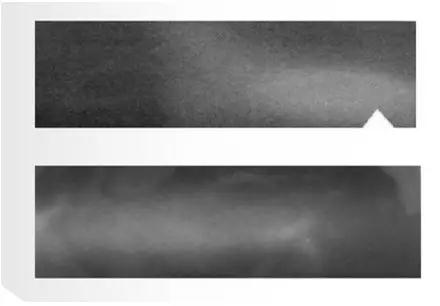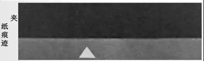 如果膠片和鉛箔增感屏之間存在一張紙,并產生了投影,則會出現夾紙痕跡。