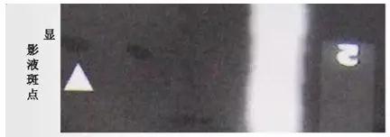 由顯現液產生的斑點同樣表征為一些小圓點,但是其黑度較周圍膠片區域的黑度高。