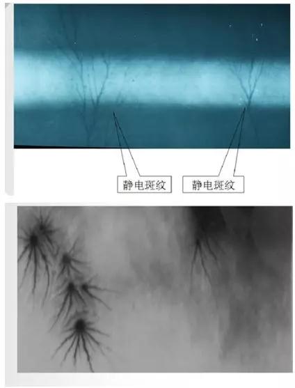 靜電曝光斑點的表征為鋸齒狀分支黑線或不規則且密集的黑色小點。