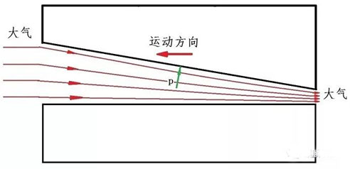 空氣動壓軸承的壓力空氣膜是通過滑動副的相互運動將空氣帶入滑動副表面之間收斂性的區域而形成的,氣膜大致為楔形,見圖1。由于空氣動壓軸承不需要外部氣源,因此也稱為“自作用軸承”。