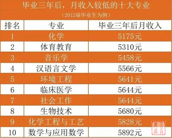 根據麥可思的《中國2012屆大學生畢業生三年后職業發展跟蹤評價》所收集的數據來看,學這十個專業的師兄師妹,隔熱管托畢業三年后,收入稍微有點兒小尷尬哦:
