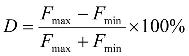 嚴格說來,恒力彈簧在其工作過程中對管道支撐點的力并不是恒定不變的,這是因為彈簧支架各運動部件之間存在摩擦力,而且各部件的尺寸、彈簧的剛度等都可能存在制造偏差,這些因素都會導致了恒力彈簧在其工作行程范圍內對支撐點的力有少量的變化。一般情況下,標準恒力彈簧支吊架在其全程位移過程中的最大和最小載荷偏差應控制在某個數值范圍內,而工程上常用恒定度這一概念來評判恒力彈簧的載荷變化。所謂恒定度是指恒力彈簧在其全行程范圍內的最大、最小載荷值之差與最大、最小載荷值之和的百分比,用式子表示即為: