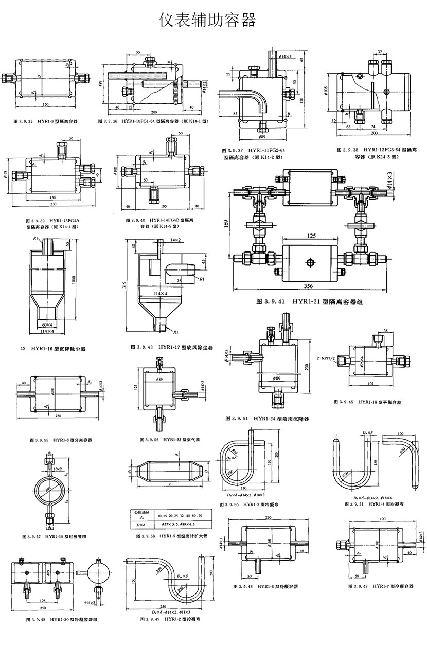 儀表輔助容器:隔離容器、沉降除塵器、旋風除塵器、平衡容器、分離容器、集氣器、壓力表緩沖彎管、虹吸管圍、溫度計擴大管、冷凝彎、冷凝容器