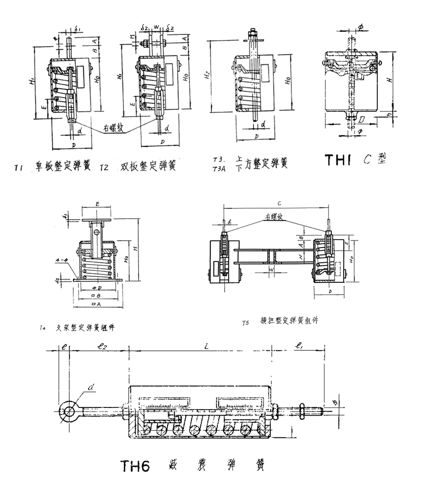 按西北院(華東院)整定彈簧組件共有五種形式: